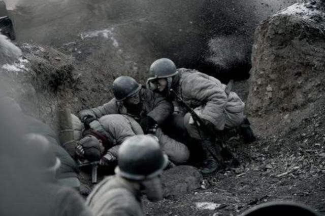 他强忍着疼痛,继续专注地观察敌情,用手势指挥战士调整火力点、挖掘掩体。