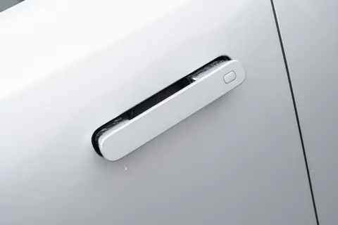 悬浮式车顶堪称流行元素,搭配从车头延伸到车尾的下压式腰线,视觉上一下子就“瘦”了不少。隐藏式电动门把手是我喜欢的细节之一,平时收起来跟车身齐平,拉门时自动弹出,有效降低了风阻。