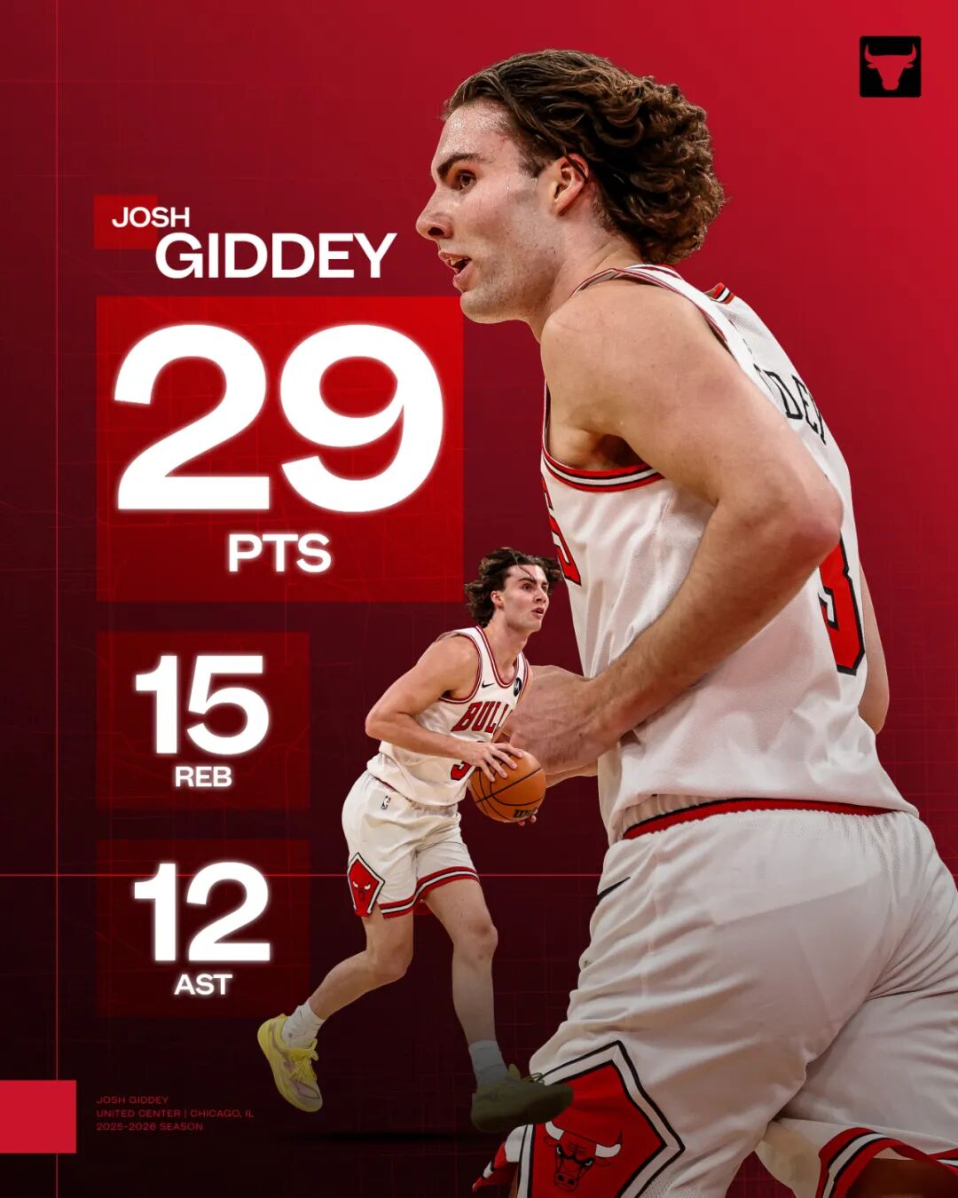 本赛季的吉迪非常惊艳,目前7场比赛打完,场均可以拿到23.1分10.0篮板9.1助攻,重点是公牛7场比赛赢下了6场,保持下去,他肯定会是全明星的一员——感叹下,公牛休赛期4年1亿续约简直赚爆了。