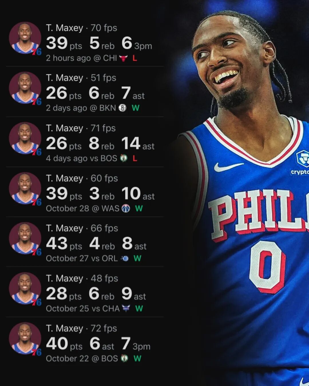 马克西目前打出了MVP级别表现,VJ埃奇库姆也是最佳新秀水平,此外格兰姆斯、乌布雷等人的表现也非常不错,去年的新秀麦凯恩也迎来了复出。