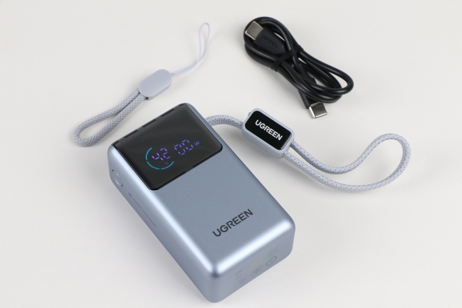 绿联能量湃 Pro个头小巧,但周边配件一个不少,除原厂的挂绳外,还附赠了一根C to C的快充线,能够为充电宝、手机等供电。