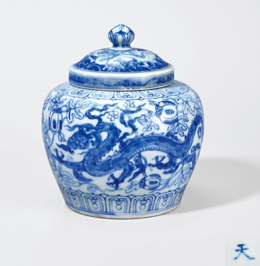 明成化 青花龙纹“天”字罐