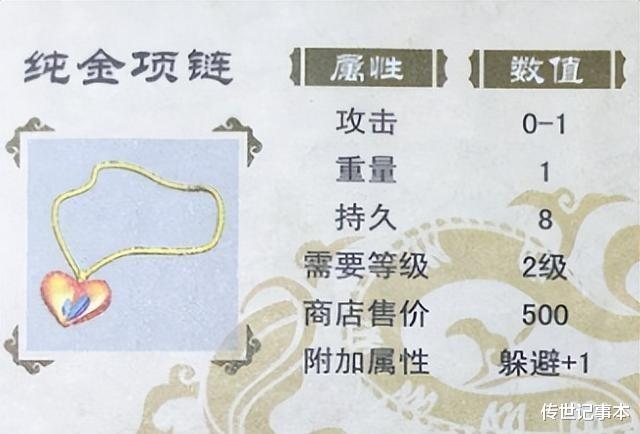 不过说起来,当年那个6级的银项链才是真香。属性跟金项链差不多,就是把躲避换成命中。有意思的是,卖商店价格居然比金项链还贵,这让当时的咱们都觉得那金项链怕不是镀的。不过这银项链确实耐用,打装备、PK时多一点命中,总比一直空刀来得实在。