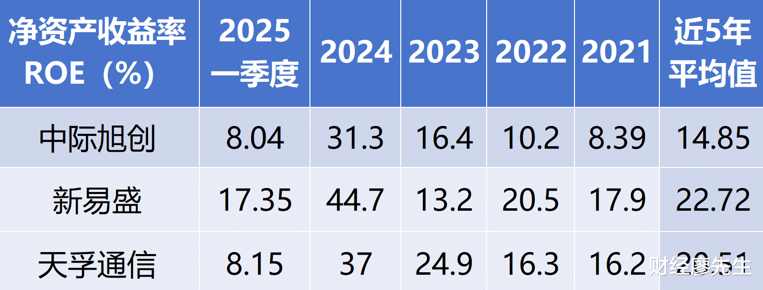 第一名是新易盛,不过新易盛的净资产收益率(ROE)波动大,在行业增长期公司的业绩弹性更高