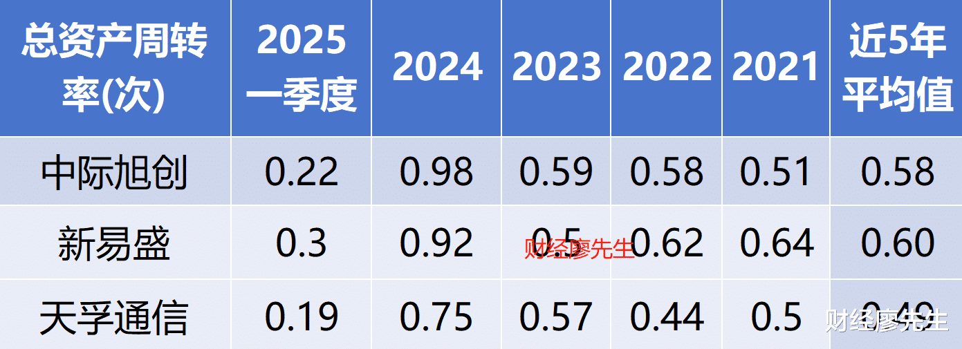 二、再看第二个指标,三大公司的运营效率(总资产周转率)