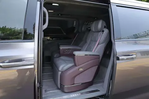车身侧面的设计简洁有力,平直的车顶线条从车头延伸至车尾,最大程度保证了头部空间,这也是MPV车型的核心设计诉求。车窗采用大面积镀铬饰条包裹,搭配隐藏式车门把手,既提升了豪华感,又降低了风阻系数。