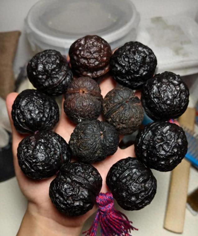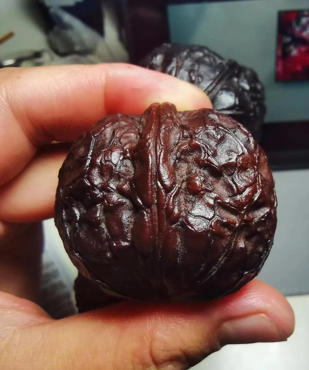 但还是迫切想知道这帮黑核桃到底如何,于是拿出一颗看了起来,直接上手整理的话肯定不行,但这么干净的表面肯定能有一些油出来。