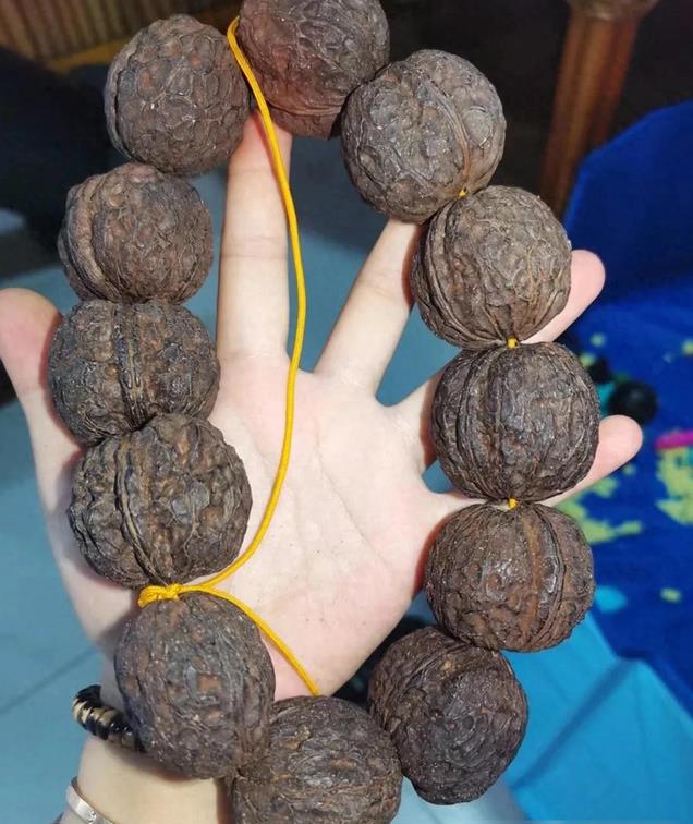 好友称这个黑核桃脏东西非常多,所以本人就将它直接缠绕没法掩饰,所以没收这串核桃。