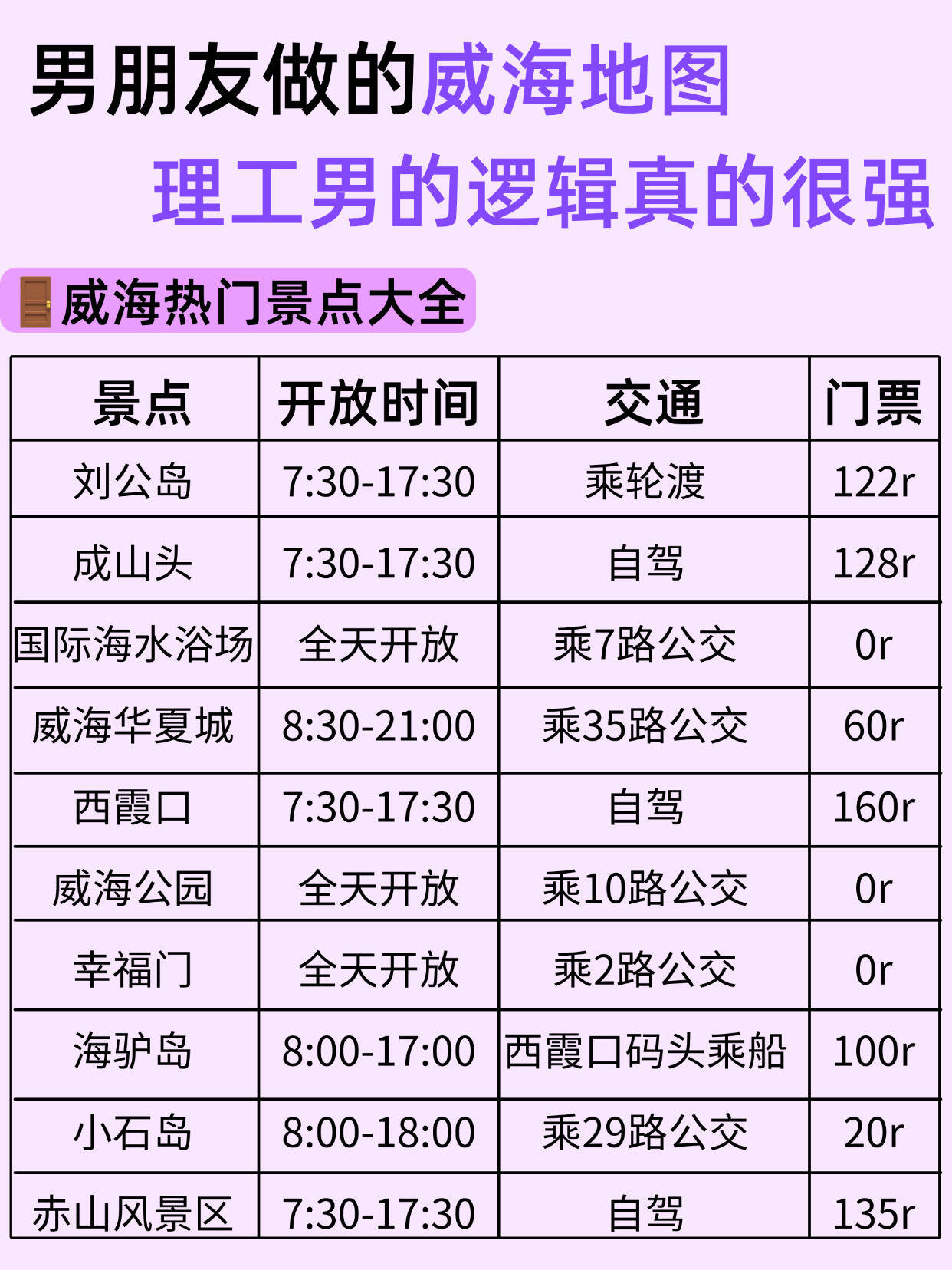 来威海旅游可以直接看这个地图,确实挺清晰的,可以根据这个图规划路线啦❗