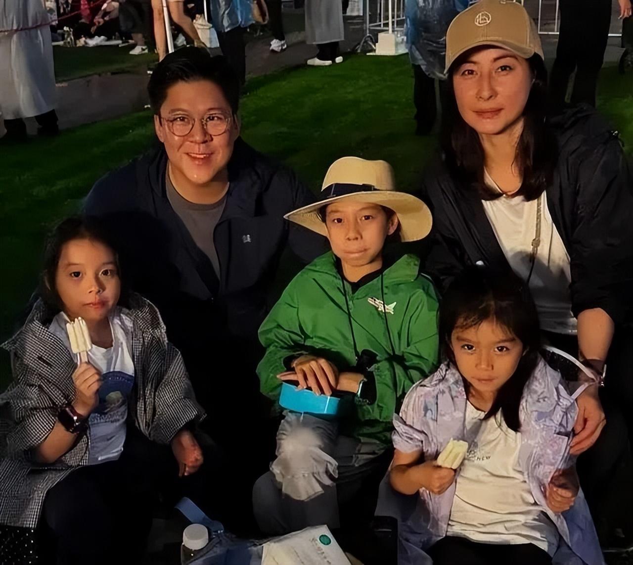近期,霍启刚一家五口在雨天观看音乐会,子女正面照曝光。