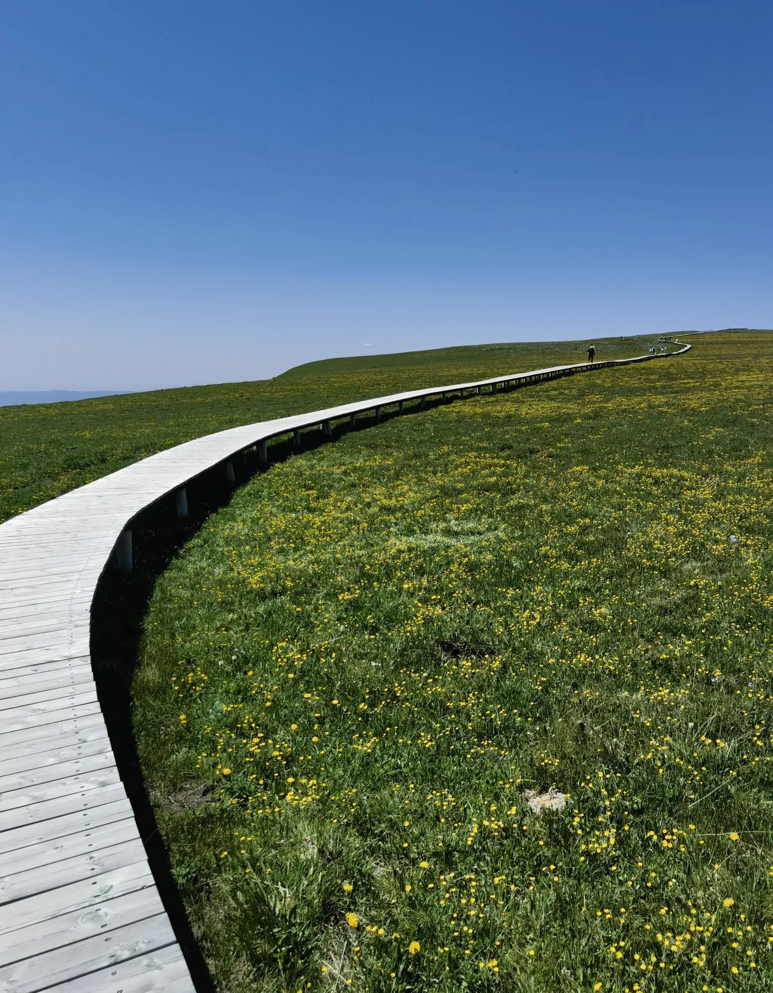 路线一:高山草甸轻徒步(适合全年龄段,单程3公里)起点:荷叶坪游客中心(海拔2300米)→ 核心区:高山草甸观景台(海拔2700米)→ 终点:敖包遗址(海拔2750米)