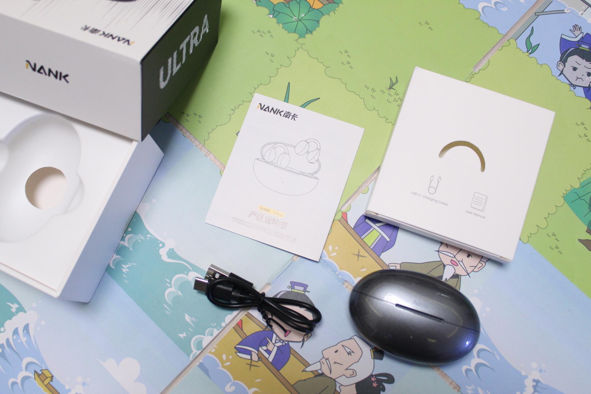 下面就是南卡Ultra耳夹式耳机的全部东西,产品主机和充电仓、数据线还有一本产品说明书。