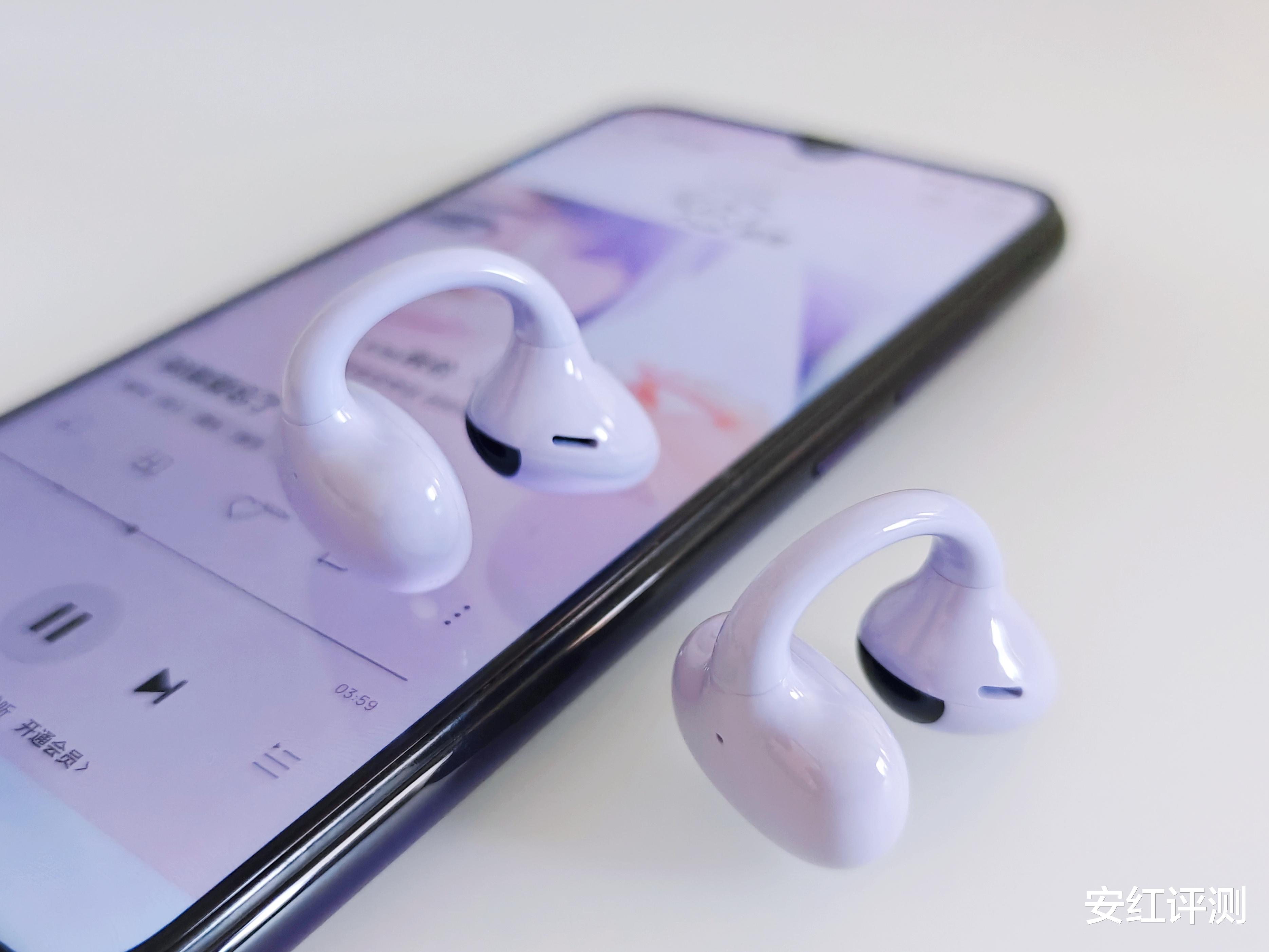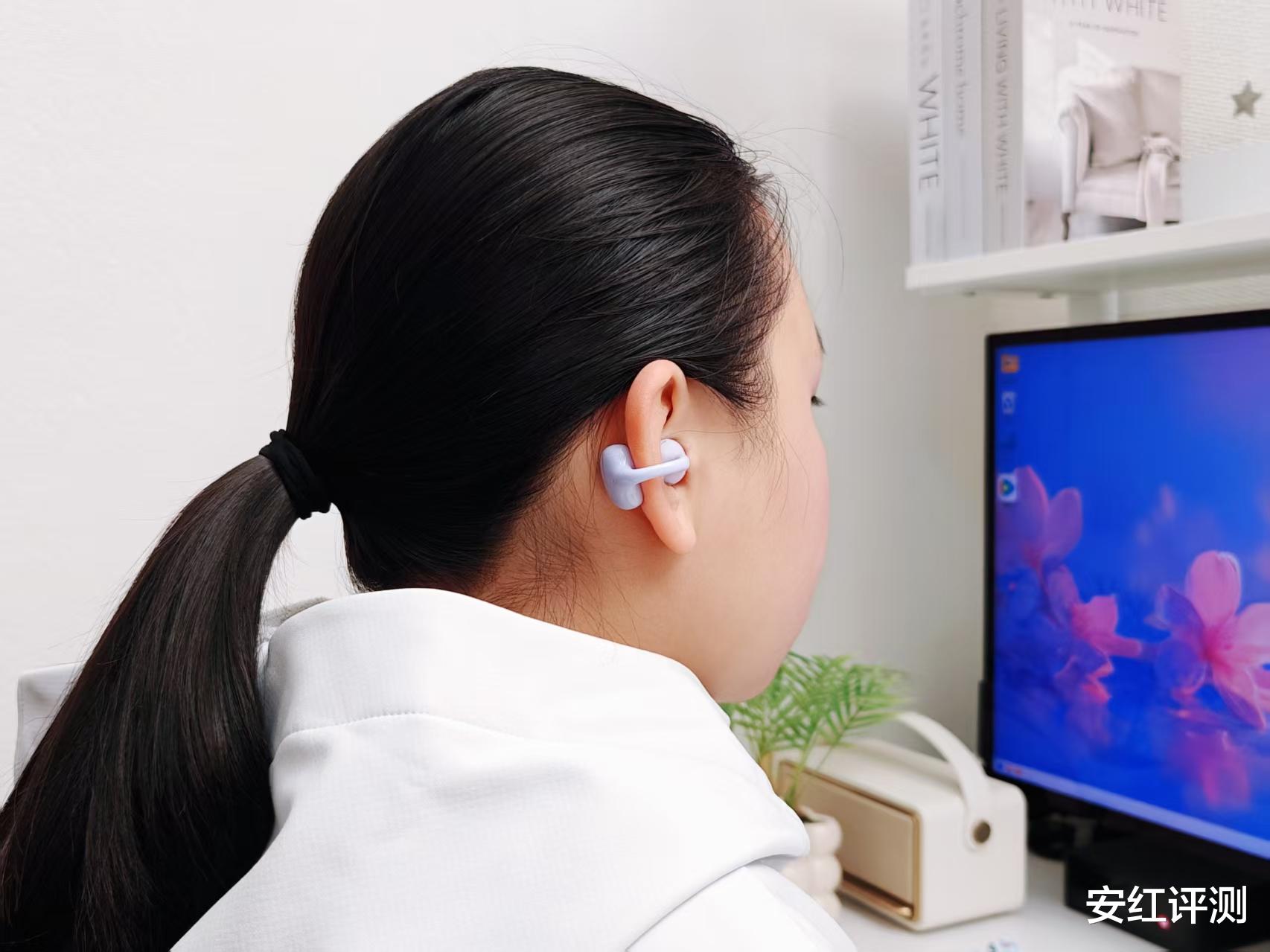 结构上,采用专利多曲率空气弧仿生设计,软梁弧度经过多次曲率调整,夹力适中符合人体工学,可以匹配不同耳廓。软梁内部采用强韧镍钛骨架,外覆柔性硅胶,亲肤舒适又耐用。6.5克单只耳机的重量,对耳部非常友好。实测下来佩戴轻盈舒适,贴合稳定,长时间佩戴耳朵也不会感觉累。