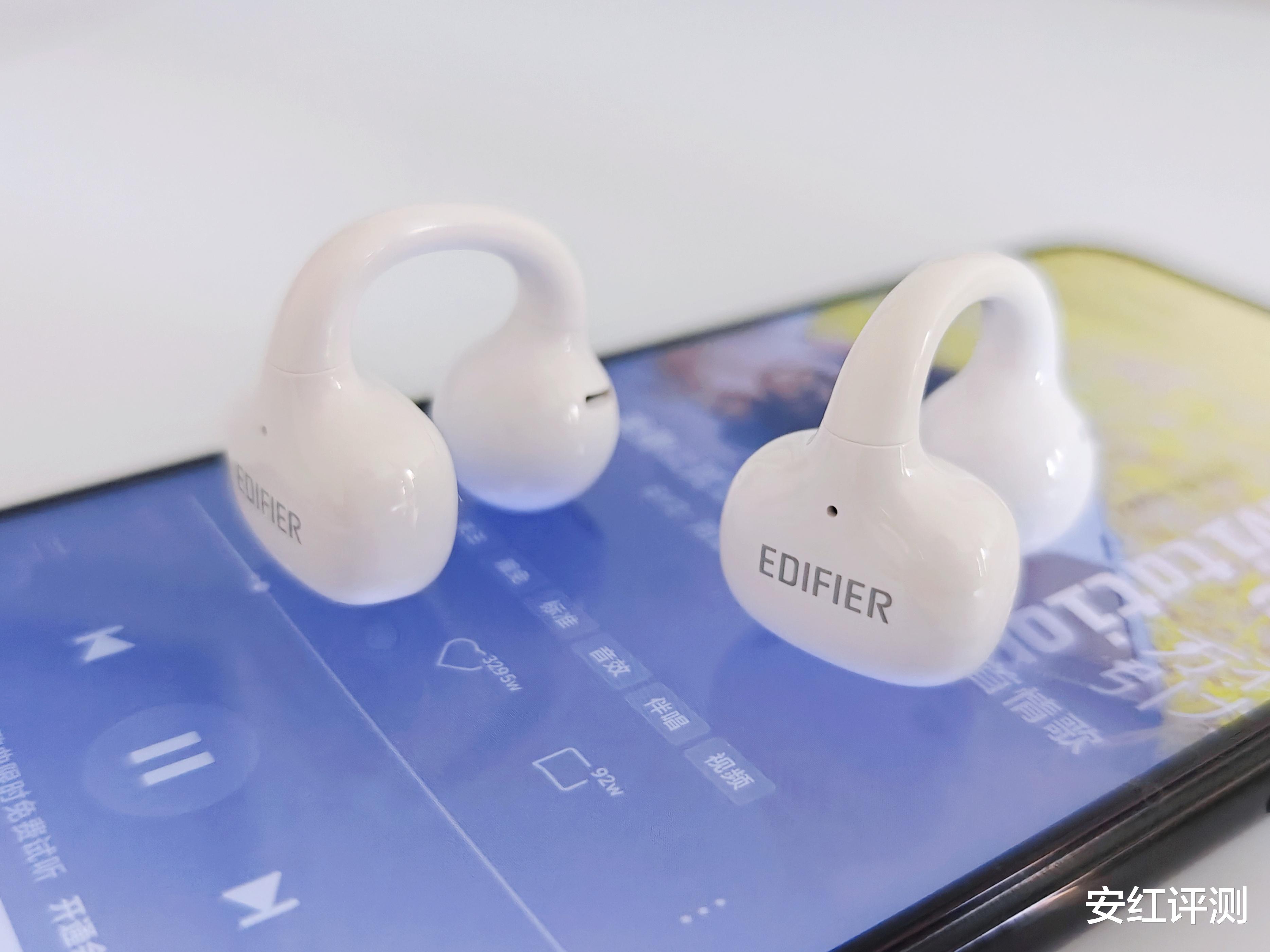 产品介绍:漫步者Comfo Clip Q同样是一款开放式真无线蓝牙耳机,有奶霜白、海盐蓝、墨玉灰、香槟金和钛空黑五种配色,我选择的是奶霜白。这款耳机和LolliClip Al一样采用耳夹式设计,由小圆头+多曲率软梁组成,轻盈小巧、造型圆润再加上亮面工艺,让耳机更显精致。