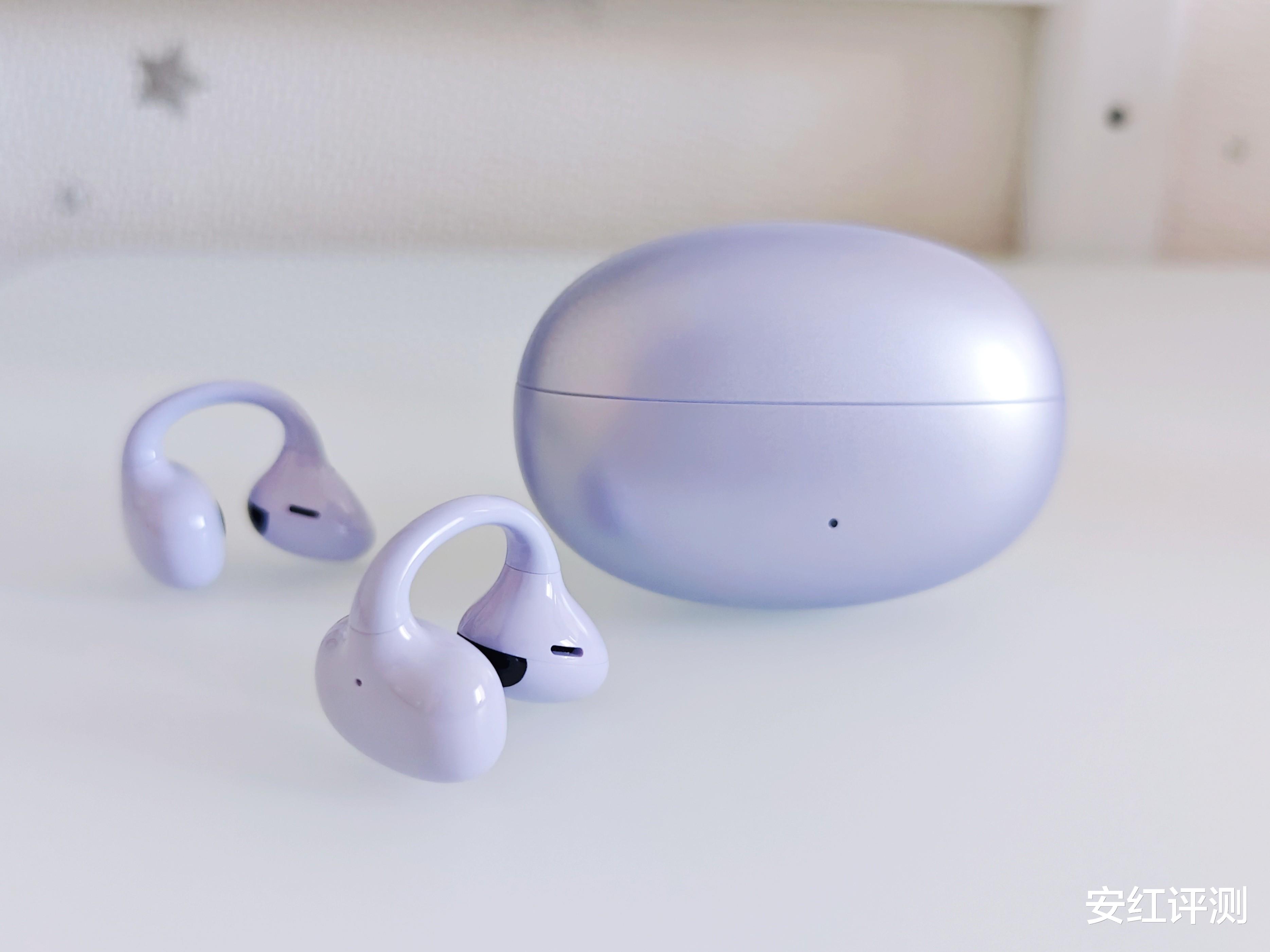 产品介绍:漫步者LolliClip Al是一款开放式真无线蓝牙耳机,有晨雾紫、暖沙金和暮霭黑三种配色,我选择的是晨雾紫,这个颜色看上去简约又时尚。此款耳机采用耳夹式设计,由声波定向结构+多曲率软梁组成,独特造型加亮面工艺充满时尚感。