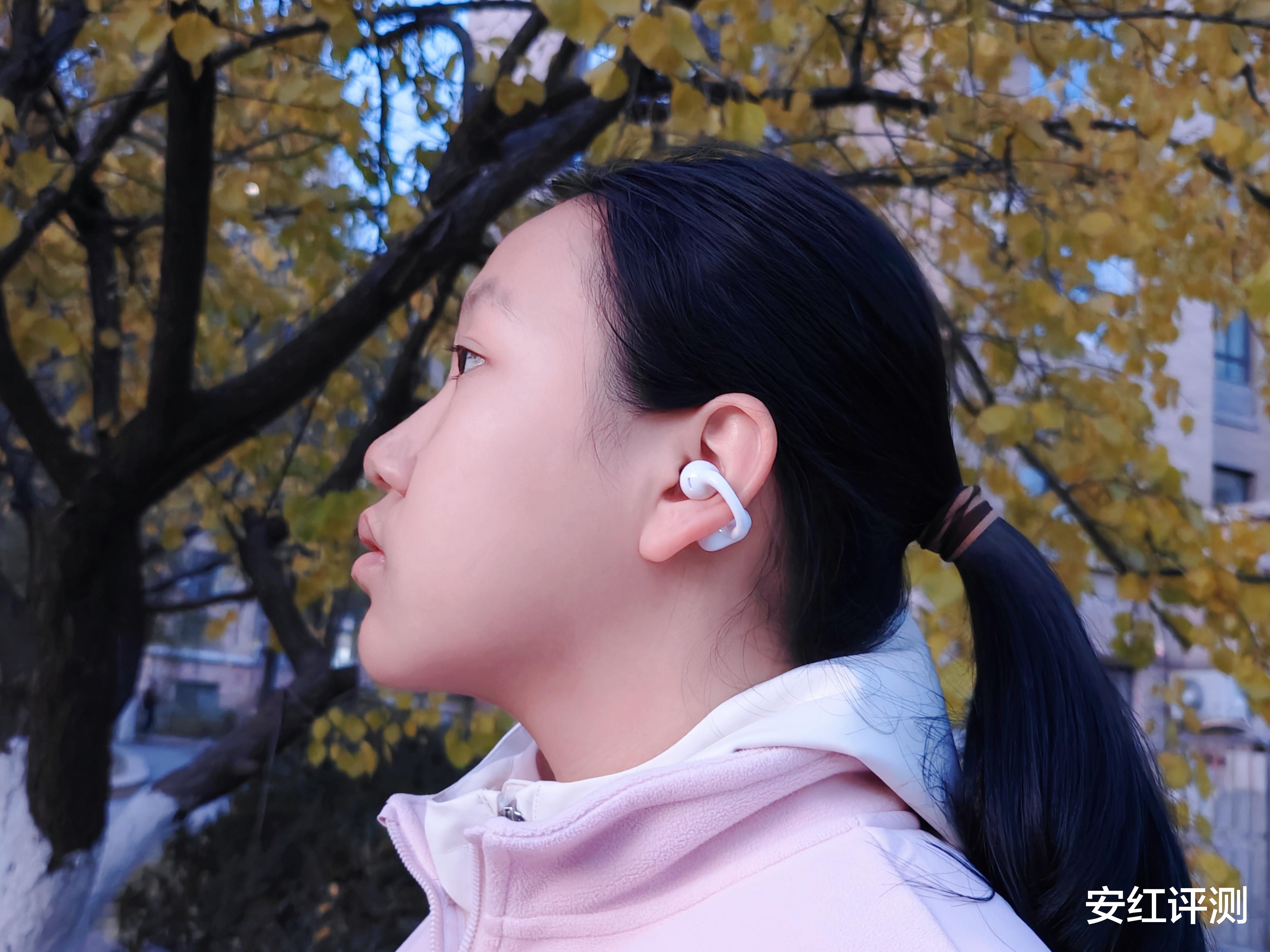 先来看下结构,采用多曲率人体工学软梁,适配不同耳型,夹力也非常适中,不同耳型都能找到最舒适的佩戴位置。特别是软梁内部为0.5mm高弹镍钛合金丝,强韧耐用。5.4克单只耳机的重量,佩戴舒适稳定,轻盈无感,长时间佩戴耳朵也不会感觉疼痛和累。