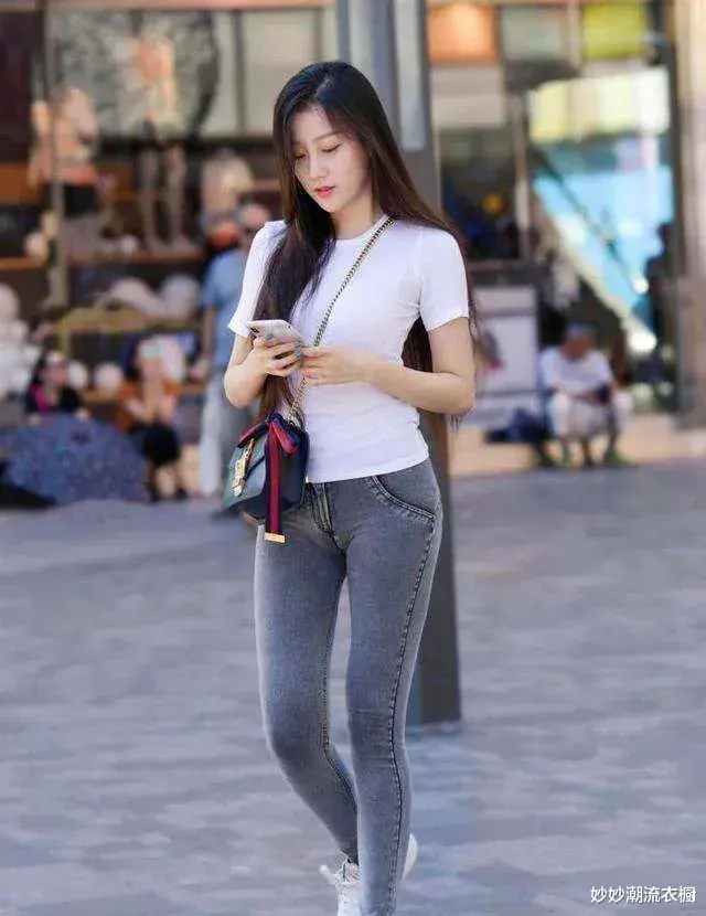 走在街头,最让人眼前一亮的往往不是华丽堆砌,而是基础款的“高级松弛感”——一件纯白色修身T恤,搭配紧身灰色牛仔裤,看似简单,却藏着“显高显瘦”的穿搭密码,连配饰都在悄悄加分。