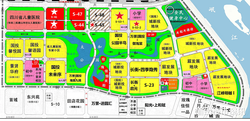 这些地块或紧邻四川省儿童医院(华西二院眉山妇女儿童医院) 这一省级医疗旗舰,坐享“家门口的三甲健康屏障”;或被小学(规划中)、初中(规划中)、苏洵小学景贤校区等全龄教育矩阵环伺,“目送式上学”的教育红利触手可及;或与太和公园 生态绿肺相拥,亦或与眉山工人文化宫(两宫一心)相衬,丰富社区休闲生活,国投·公园半岛、万景|国投·御海棠、国投·未来序、眉山发展地产·首域、长衡·启元等品质住区已先行落位,生活烟火与自然静谧在此共生,眉山发展地产500亩新项目,亦将尽享邻里中心配套红利,为未来生活成就便利与舒适。