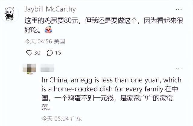 一位网友表示,美国鸡蛋能卖到80元(不知是否换算成人民币),但经不住美食的诱惑,他还是决定要做。