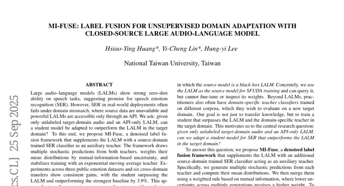这项由台湾大学的黄晓瑩、林艺诚和李宏毅教授共同完成的研究,发表于2025年9月的arXiv预印本平台(论文编号:arXiv:2509.20706v1),为语音情感识别领域带来了一个巧妙的解决方案。有兴趣深入了解的读者可以通过该编号查询完整论文。