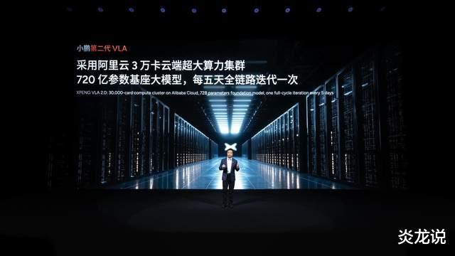 强大的模型离不开强大的算力与数据支撑。小鹏拥有全球领先的3万卡云端算力集群,运行效率常年保持在90%以上,并已在云端实现了720亿超大规模参数基座模型的部署,该模型可实现每五天全链路迭代一次。用于训练第二代VLA的数据量接近1亿个视频片段,相当于人类司机驾驶65,000年才能遇到的极限场景总和。这种海量的、无需人工标注的真实数据训练,使得模型能够推演未来决策场景,并自我生成更真实的长尾场景进行对抗训练,从而大幅提升应对罕见复杂情况的能力。