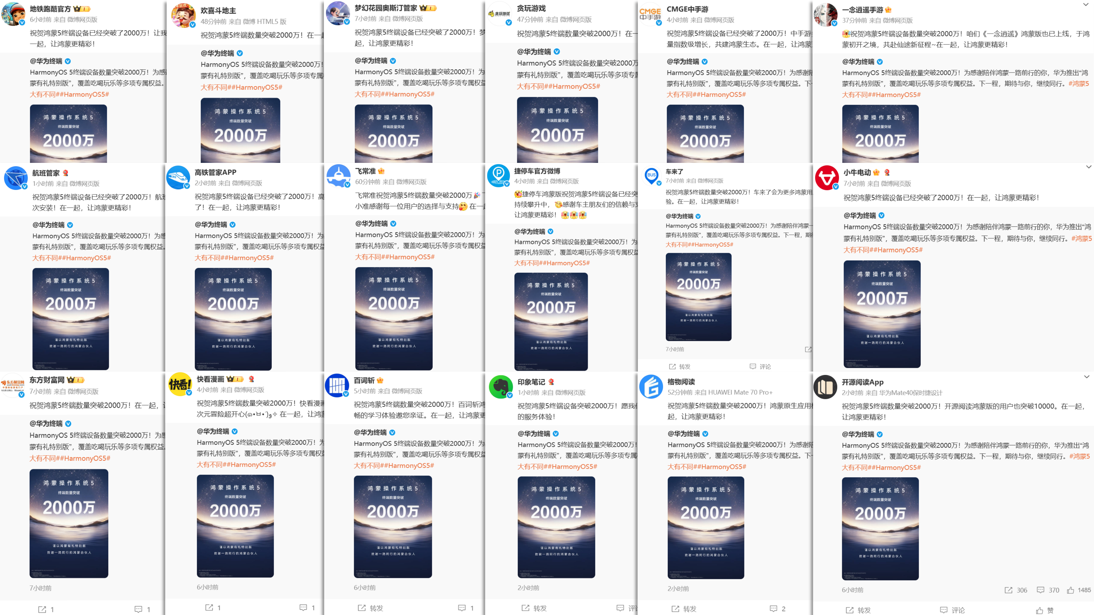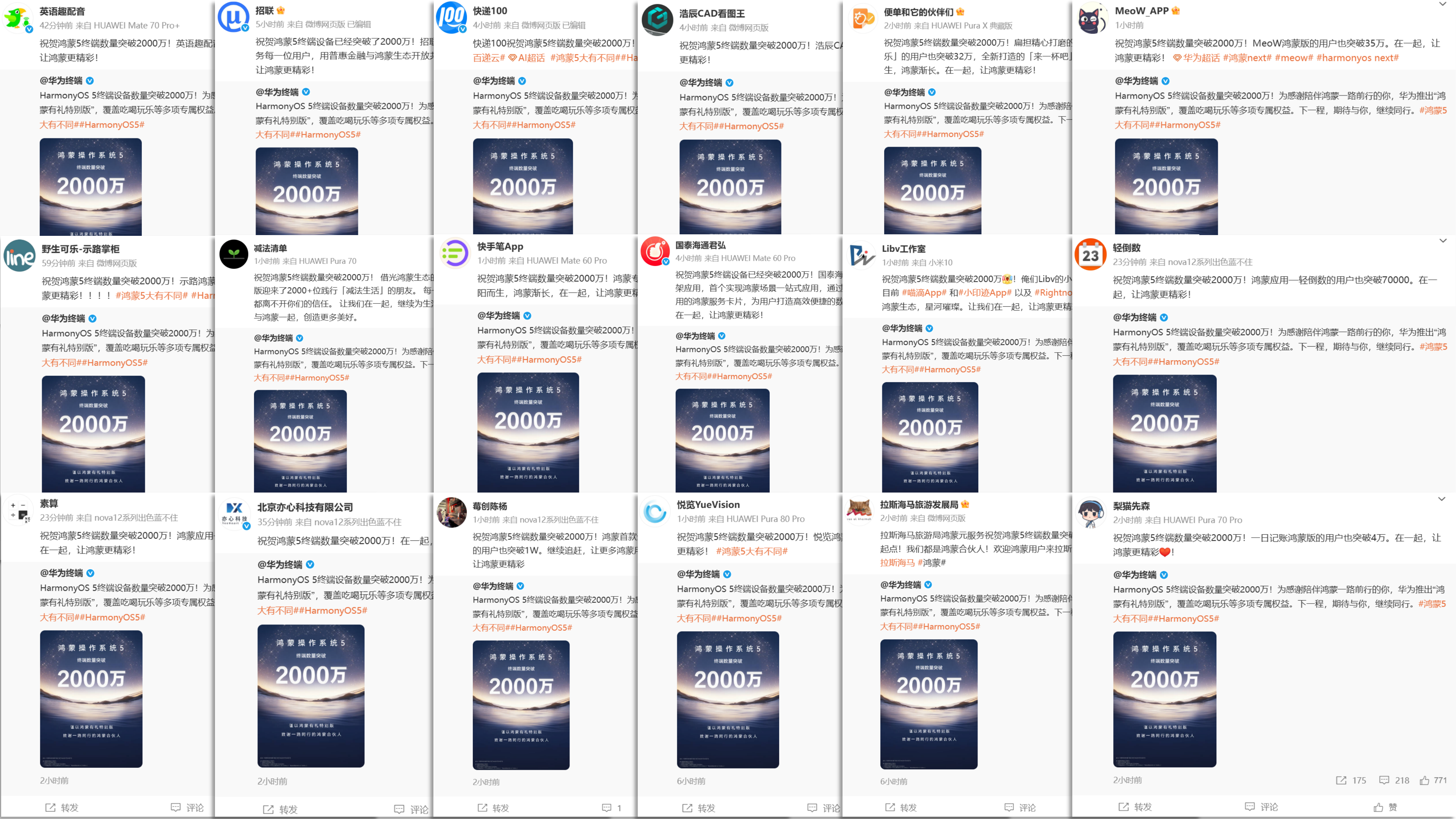 2000万鸿蒙5终端设备,是里程碑,更是新起点。展望前路,鸿蒙生态将继续与更多伙伴一道,为用户带来更好的体验!