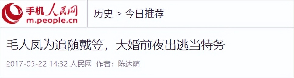 【2】人民网——《毛人凤为追随戴笠,大婚前夜出逃当特务》