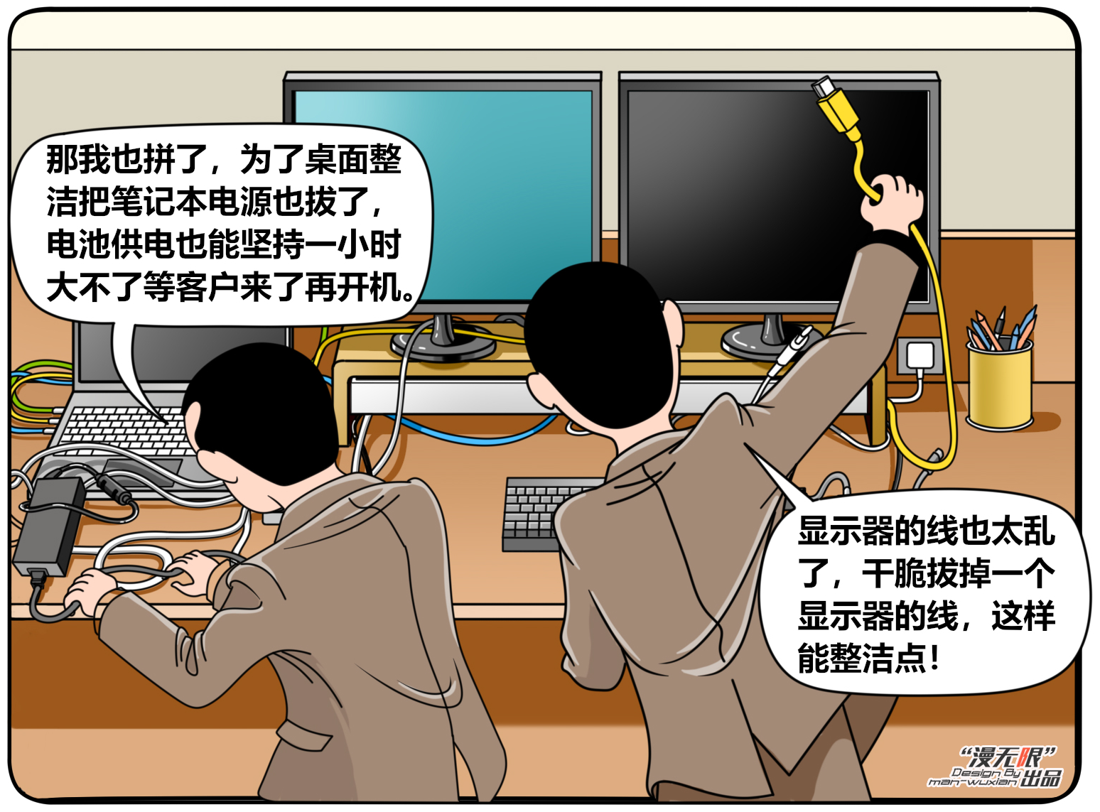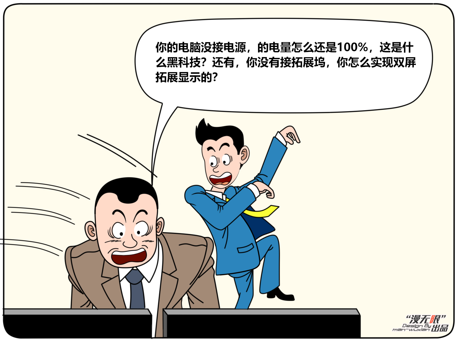 什么?笔记本不接电源续航一天后电量居然还是100%?!到底是什么黑科技?请看下面精彩的漫画。