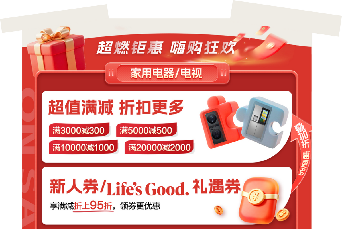 从今日起至11月30日,LG电子官方商城针对家用电器与电视品类掀起一场满减风暴。活动期间,消费者选购家用电器或电视产品(配件及套装产品除外),即可参与满减活动。此次满减优惠券设置了多个档位,满3000减300、满5000减500、满10000减1000、满20000减2000,满足不同消费者的购物需求。每个会员在活动期间对各个档位的优惠券均有一次领取机会,让实惠触手可及。