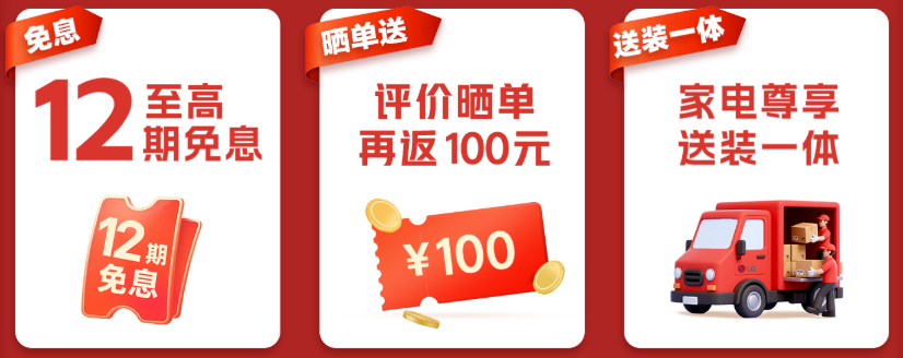 活动期间,众多商品支持灵活的分期免息服务。无论是为温馨的家居环境添置高品质家电、高端电视,亦或是渴望升级手中的显示器或者笔记本电脑,都能通过分期服务轻松拥有心仪产品。