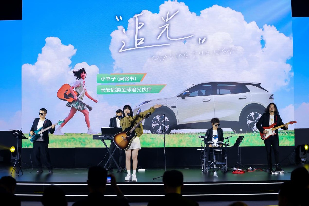 发布会上,长安启源正式启动全球追光伙伴计划,发布全球追光伙伴计划主题歌曲《追光 Chasing The Light》,并正式向全球伙伴发布全网征集《追光》英文原创歌词、全民线上合唱两项追光任务,邀请全球追光者参与内容共创,传递 “向美好跃迁” 的品牌主张。