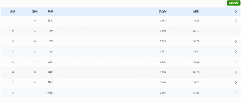 湖南队在第1道、广东队第2道、福建队第3道、江西队第4道、湖北队第5道、江苏队第6道、山东队第7道、四川队第8道。