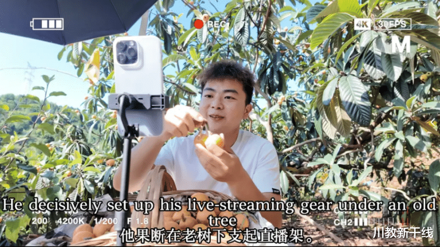 团队成员们认为,最巧妙的设计在于“以细节见证宏大”:全片紧贴阿吉的个人视角,让“科技赋能”不再是一个口号,而是他直播时微颤却坚定的声音,是打印出的那张象征“被看见”的密集快递单。同时,他们通过强烈的视觉对比——老人佝偻背负沉重的水果的缓慢身影与屏幕上飞速跳动的订单数字——将时代的变迁凝练于极具冲击力的画面中,让观众深刻感受到,乡村振兴正是由这一个个被科技点亮的平凡梦想所推动的。