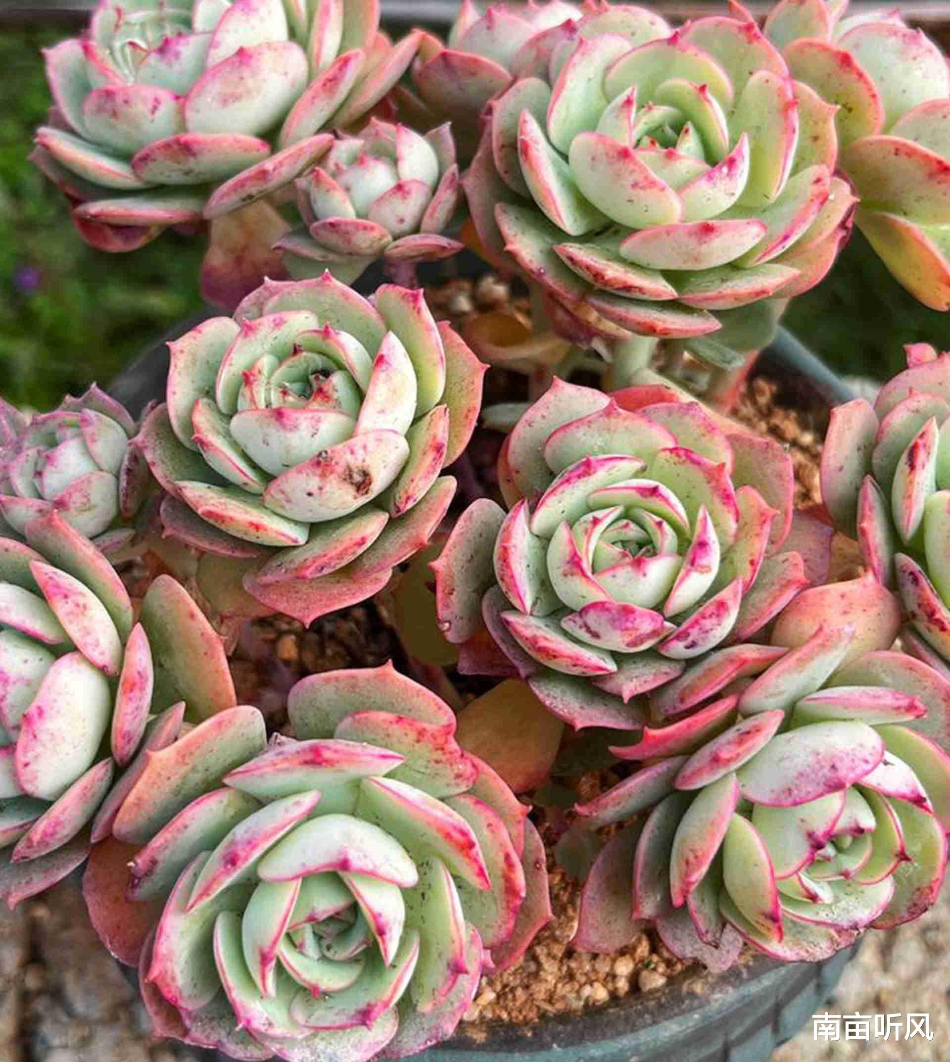 还有桃蛋,桃蛋的叶片是圆润的,颜色粉粉嫩嫩的。在西北地区,有的家庭阳台比较小,有人会同时种上蒂亚和桃蛋。桃蛋比较容易徒长,如果不加以控制,就会变得细长细长的。相比之下,蒂亚的徒长情况会稍微好一点,但是如果修剪不及时,也会出现枝条细长的问题。