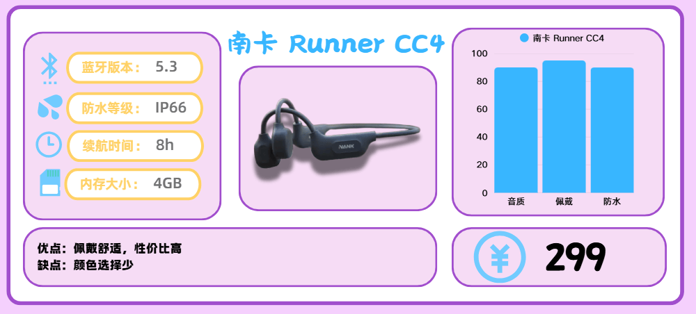 从配置和体验感来看,南卡RunnerCC4是南卡的用心之作,价格也相当实惠,是骨传导耳机当中的入门首选。