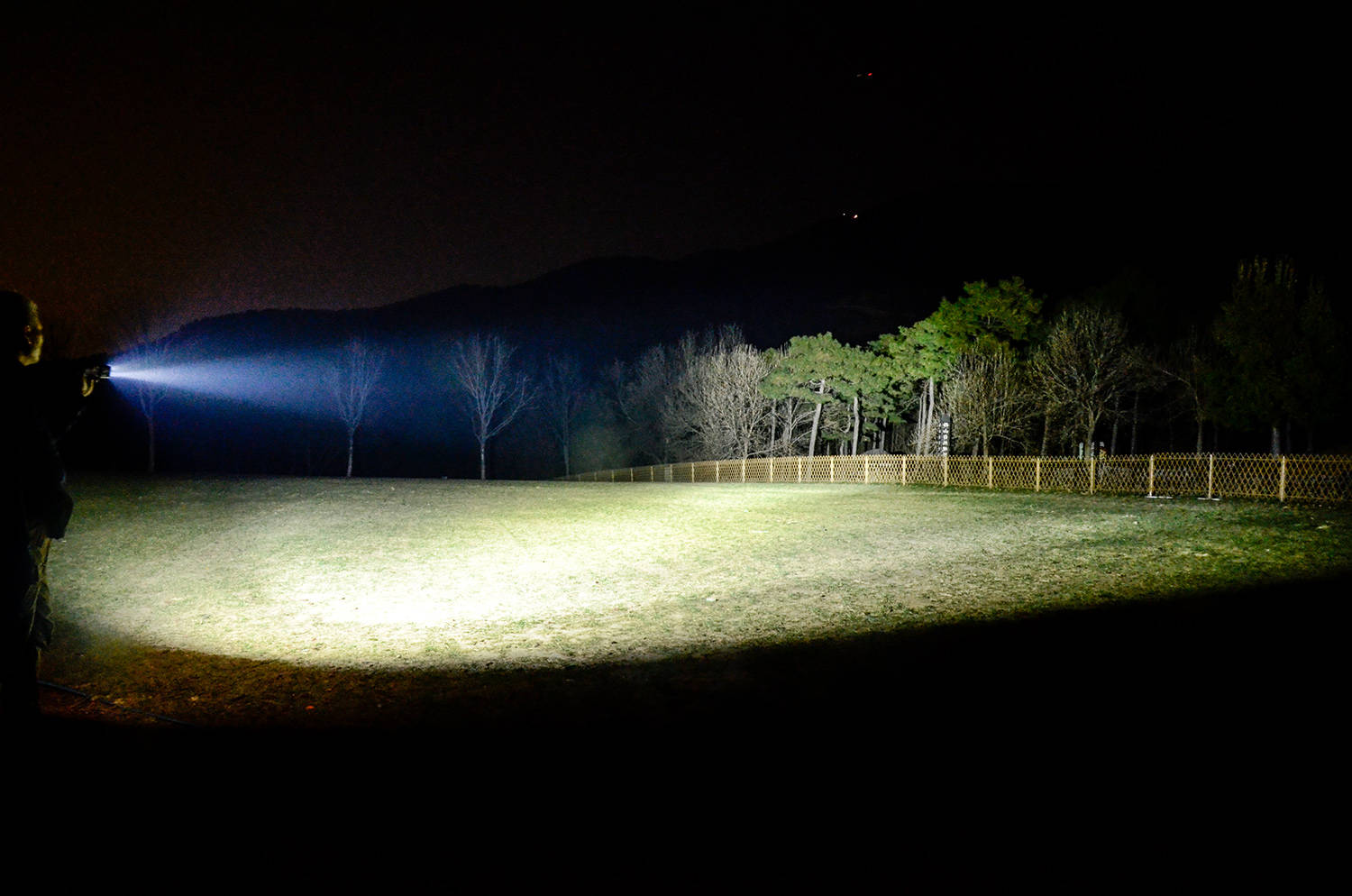 泛光形成非常开阔的照明视野,与环境之间可以看到清晰地界线,前方的整体都被手电的光线铺满,大范围的铺路效果,助你看得更加开阔,远泛兼顾就是这样清清楚楚、明明白白、真真切切。