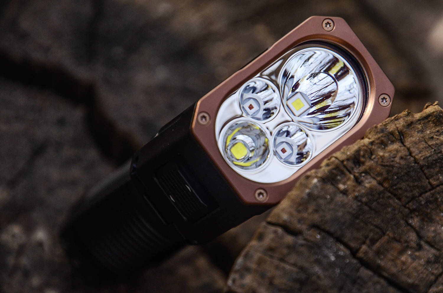 TK28R的白光照明采用的是流明纳斯LUMINUSS的聚光、泛光双子新秀——SFT70和SST70,SFT70是目前的主力战术聚光灯珠,无果冻;SST70是高光效的泛光灯珠,有果冻,组成一套豪华强光照明配置。