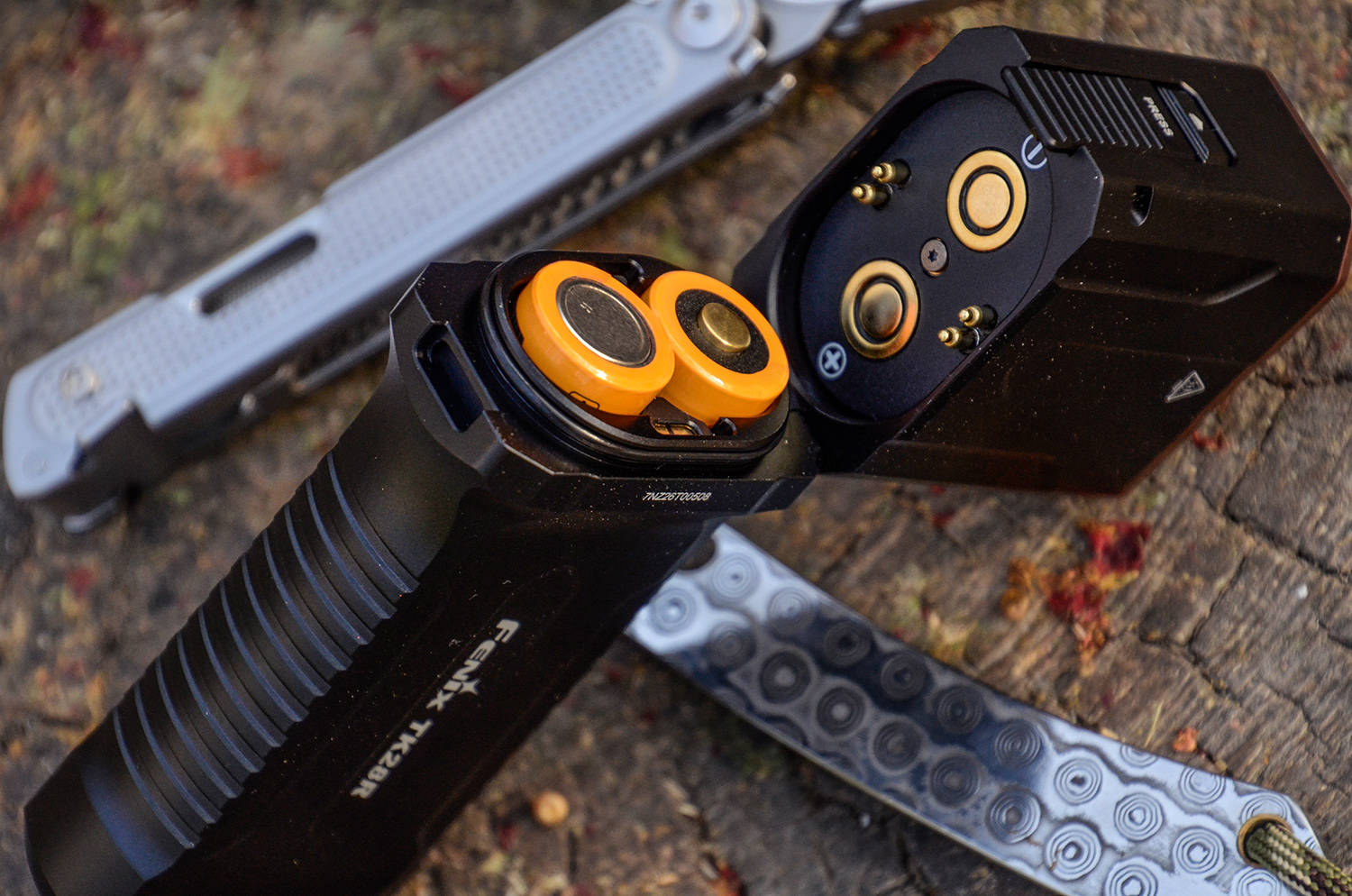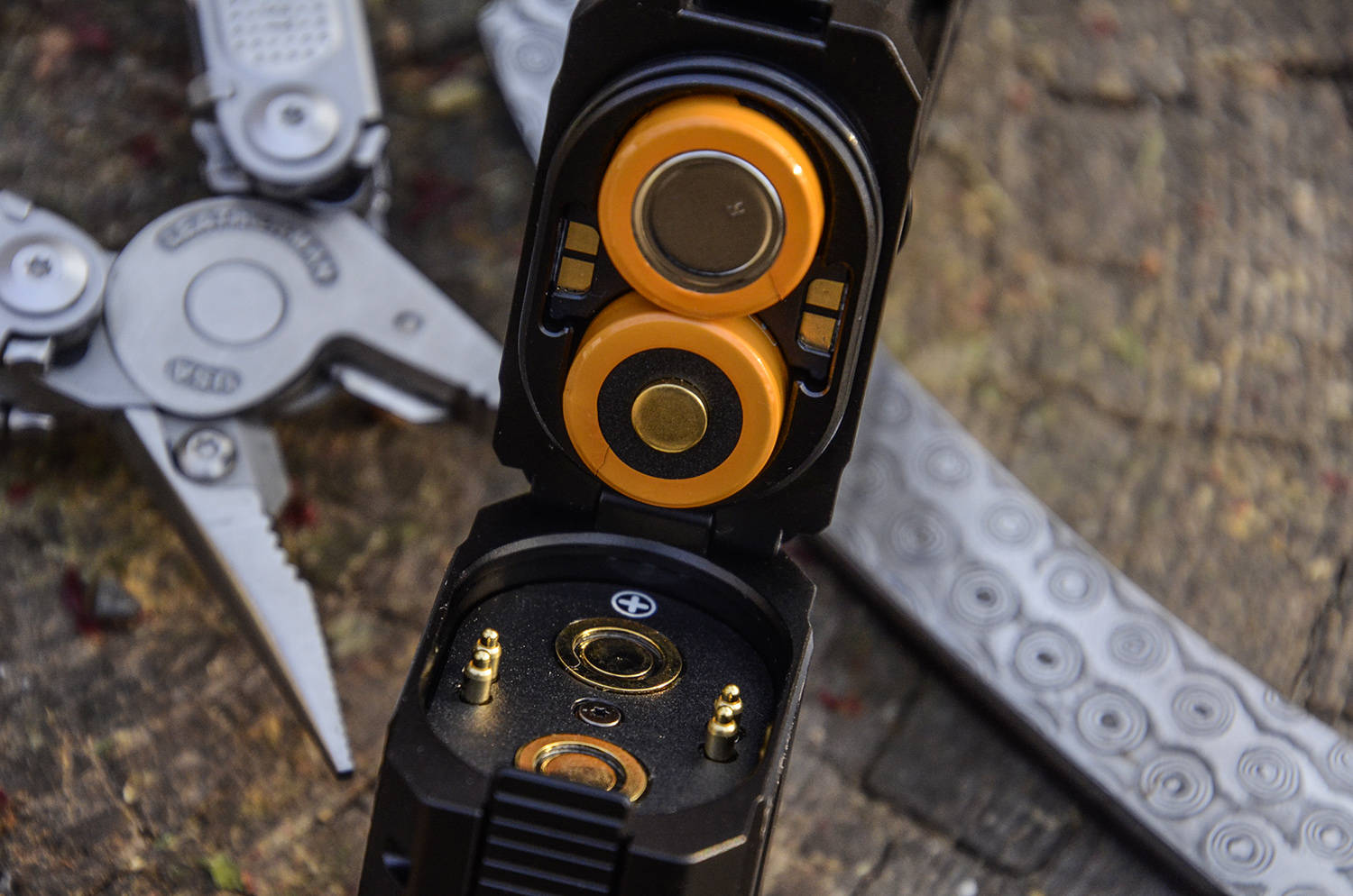 TK28R还是一个优秀的“变形金刚”,灯头一端通过铰链与筒身连接,另一端可以打开,快速露出电池仓,方便快速更换电池,保证灵活的战术机动性能。