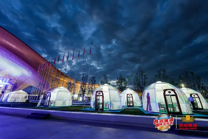 在露营区,帐篷、星空房环裹四周,头上繁星映入冰啤或气泡水中,化作无尽泡沫,一饮而尽,城市的诗意与远方,就在这一夜,才能触手可及,“可一未必可再”。