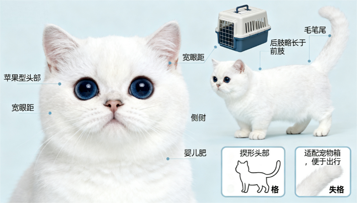 尽管缺乏官方认可,行业内已形成隐性标准:体重超过 3.5 公斤、四肢过长(趋近普通家猫比例)、头部呈楔形、眼睛过窄呈杏仁状、出现脊柱弯曲或多趾等畸形均属严重缺陷;被毛粗糙无光泽、耳位过低、眼色浑浊等则会降低个体价值。