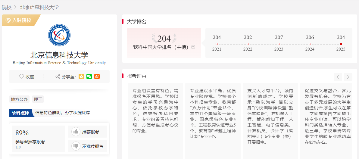 本文素材来源:北京信息科技大学学校简介、软科排名