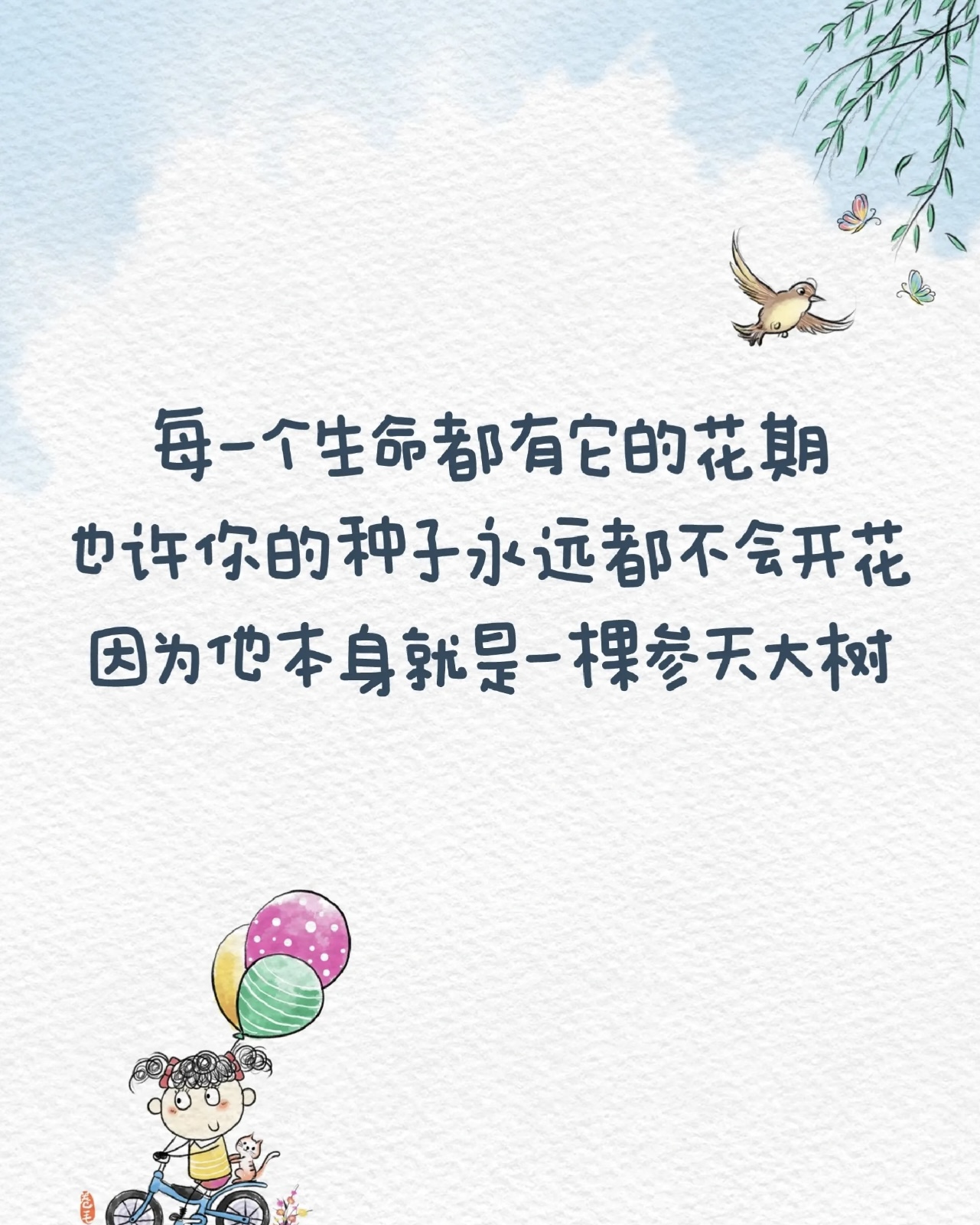 每个孩子都是限量版,别人家孩子最让人羡慕的,往往是全面优秀:学习好、才艺多、性格乖。可别人家父母从不拿自己的孩子和别人比,因为他们知道,每个孩子都是独一无二的限量版。有位爸爸的做法特别值得借鉴:他女儿从小不爱跳舞,却对昆虫痴迷。别的家长觉得女孩子学跳舞才有气质,他却给女儿买了显微镜、昆虫图鉴,周末带她去公园观察蚂蚁搬家。现在女儿成了学校昆虫小专家,写的观察日记还被选为范文。爸爸说:“我从来没想过让她成为‘别人家的孩子’,我只希望她成为‘自己家的孩子’——那个因为热爱而闪闪发光的自己。”教育学家蒙台梭利说过:“每个孩子都是一颗种子,只是花期不同。”有的花春天开,有的花冬天开,有的花可能永远不开,但会长成参天大树。尊重孩子的差异,不是放任不管,而是发现他的天赋,帮他找到属于自己的成长节奏。