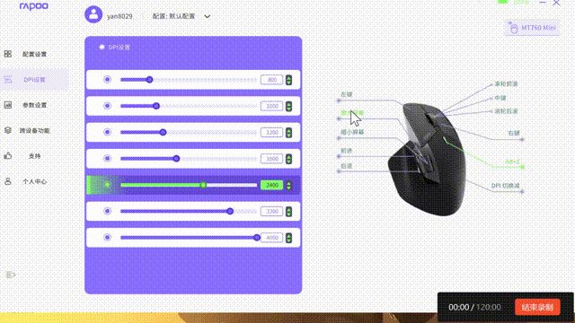 作为办公鼠标,对于性能要求当然没有游戏鼠标那么高,雷柏MT760搭配的引擎为原相3220,这款引擎在原相的办公级引擎中属于中等水平,作为日常办公来说其实是够用的。1、鼠标灵敏度