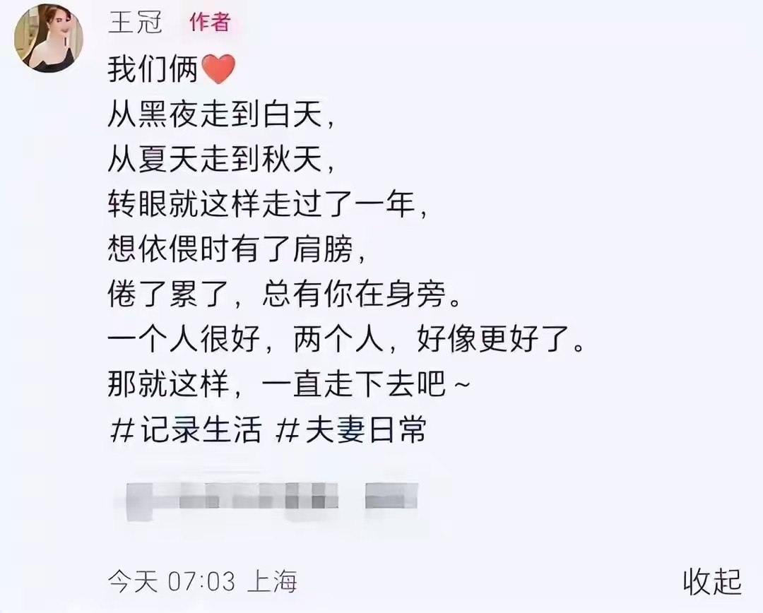 当评论区在为她的终身大事担忧时,殊不知,王冠早已经收获爱情,过上了踏实幸福的生活。
