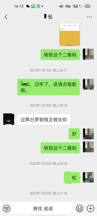 租赁期间,张某松的租金支付多次出现延迟。2021年至2023年间,张女士家人需每年年底反复催收,张某松才通过微信转账支付500元/年的租金,收款方包括张某燊等家族成员,相关聊天记录和转账电子凭证完整印证了租赁关系的真实性。