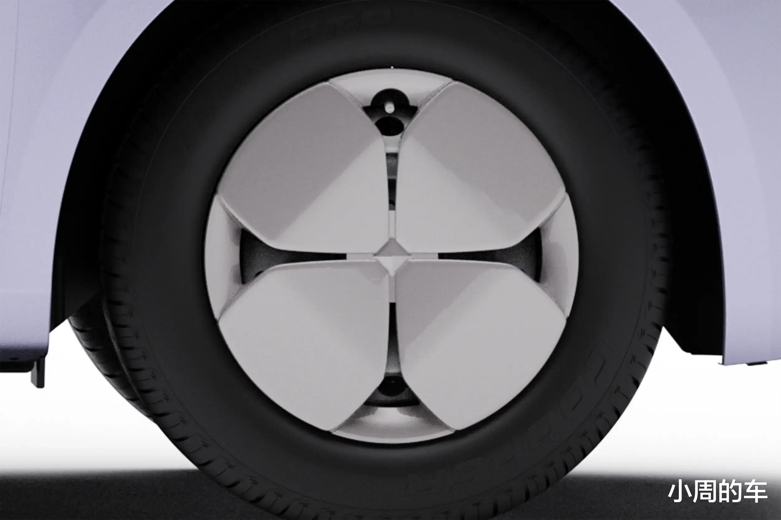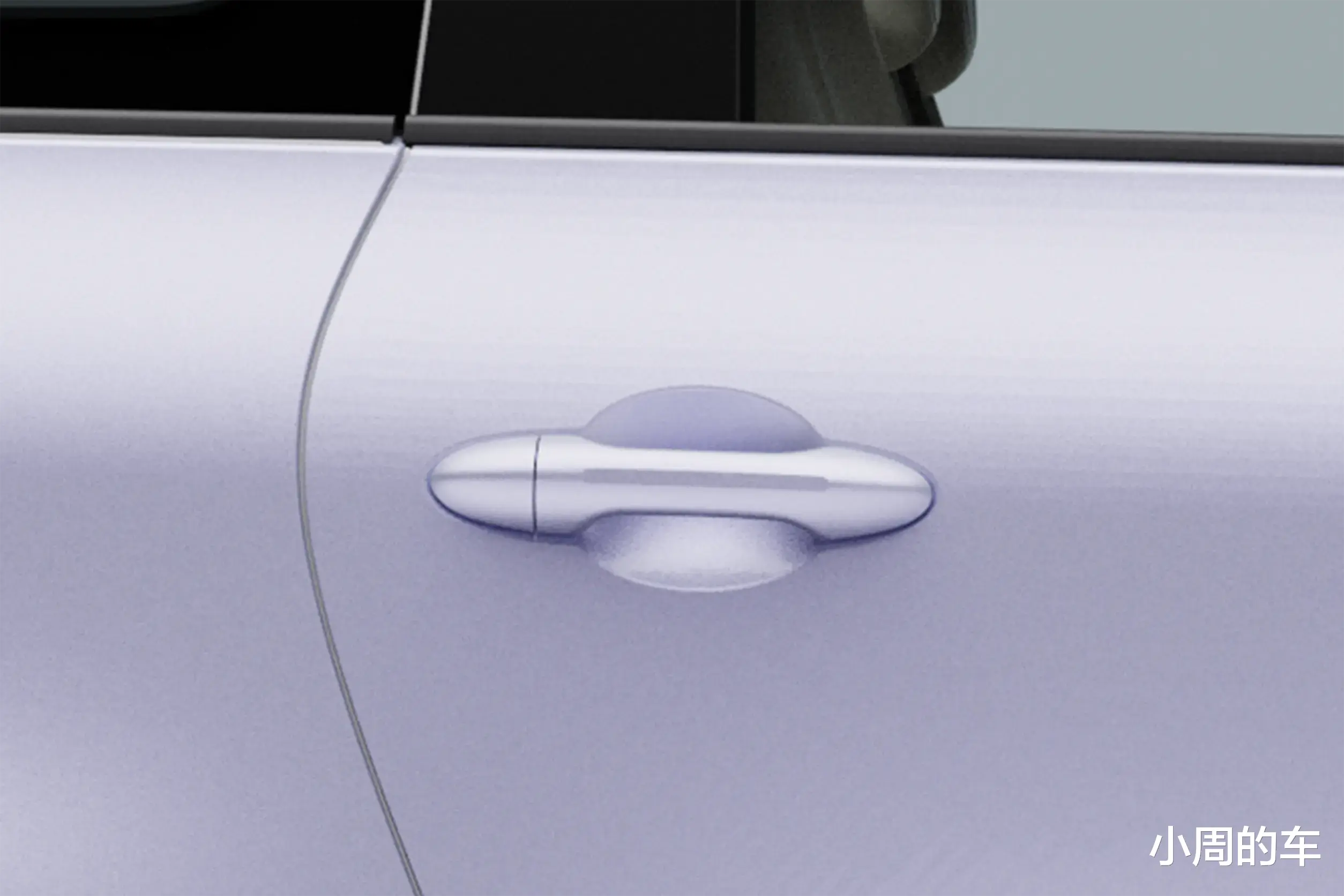 车身侧面设计比较简洁,熏黑的A/B/C柱以及外后视镜罩壳打造出了悬浮式车顶的视觉效果,搭配“四叶草”样式的轮毂罩壳,展示出了它时尚的一面,值得一提的是,该车为三门式布局,并采用了传统样式的门把手,方便了车门的开启,充电口则是被设置在了右前翼子板处。