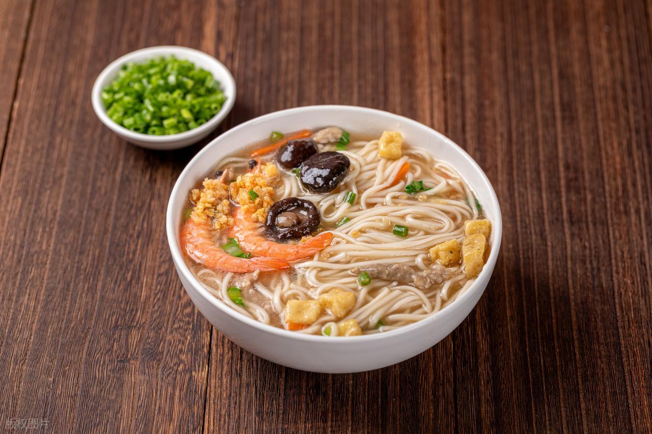 基础版是加猪肉片和青菜的,汤汁的味道浓郁。而更为地道的做法会加入更多海鲜元素:油热先煎鸡蛋,五花肉翻炒出油,蒜头炒香,香菇、胡萝卜卷翻炒一下,加入包菜、味事达、胡萝卜丝、松鲜鲜,加入大骨汤。
