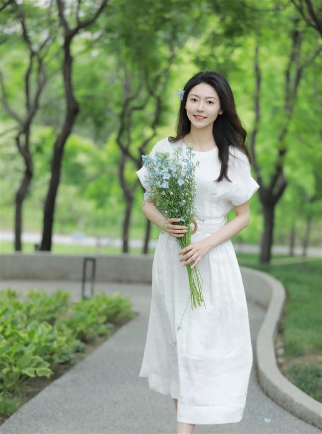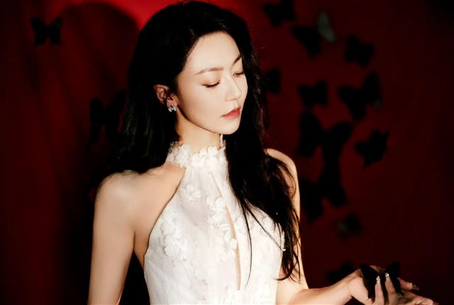 这让我想起黄梦莹在米兰时装周上的惊鸿一瞥:雾霾蓝真丝长裙如湖水流动,腰间手工刺绣的玉兰花在行走间若隐若现。