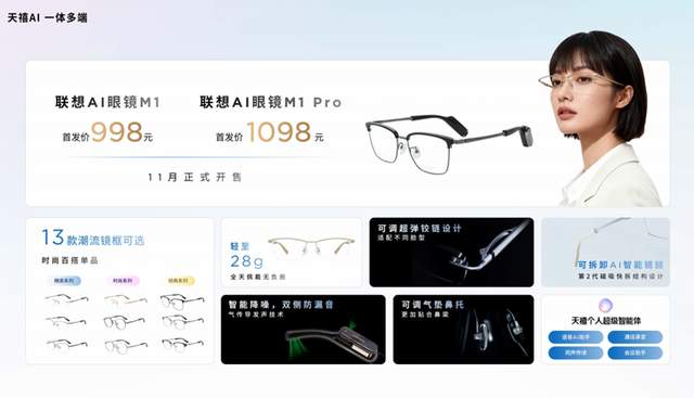 这场发布会除已详述的 moto X70 Air、g100 系列手机外,还推出联想 YOGA Pad Pro 14.5 AI 平板,其搭载自研芯片可离线运行 AI 模型,配合 14.5 英寸 3K 120Hz OLED 护眼屏,与支持 “转笔即擦”“涂鸦生图” 的联想手写笔 Pro 第二代协同,重新定义移动办公与创作体验;同步亮相联想 AI 眼镜 M1/M1 Pro、V1,其中 M1 系列 28 克超轻机身支持会议纪要生成与实时翻译,998 元起售,V1 可实现 AR 显示导航、提词等功能,3999 元开启预售,所有新品均由天禧 AI3.5 赋能。