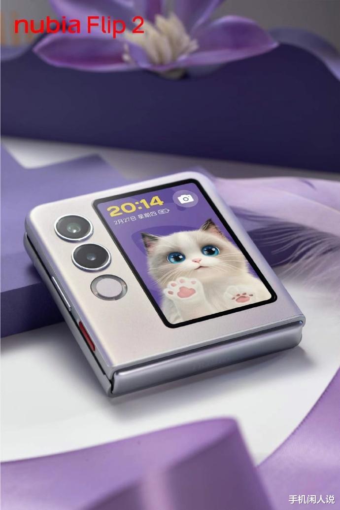 努比亚Flip 2搭载联发科天玑7300X处理器,3英寸竖向OLED外屏,京东方Q9+ 发光材料,内屏就能直接使用300+ 常用 APP,6.9英寸OLED 柔性内屏,支持120HZ高刷和2160Hz高频PWM调光,水滴铰链,太空钢材料扇骨转轴,航空铝中框。